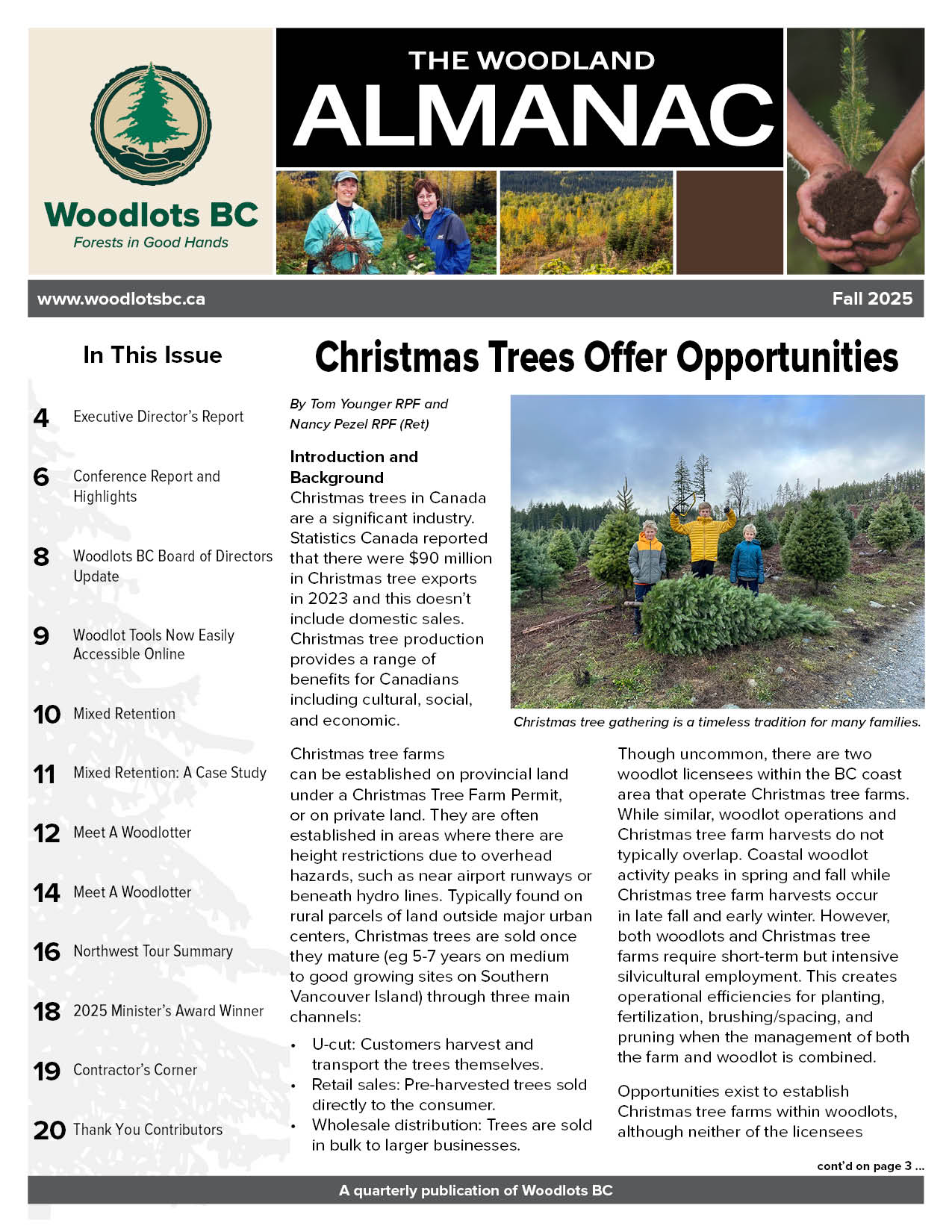 The Woodland Almanac is a quarterly publication of Woodlots BC (Woodlot Product Development Council). If you are interested in advertising, please contact Woodlots BC.